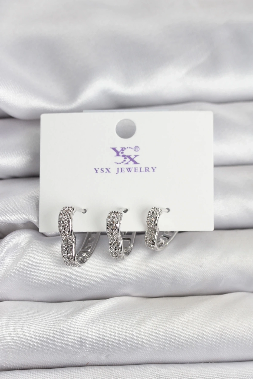 ® Gümüş Renk Pirinç Zirkon Taşlı Kalpli Kadın Küpe
