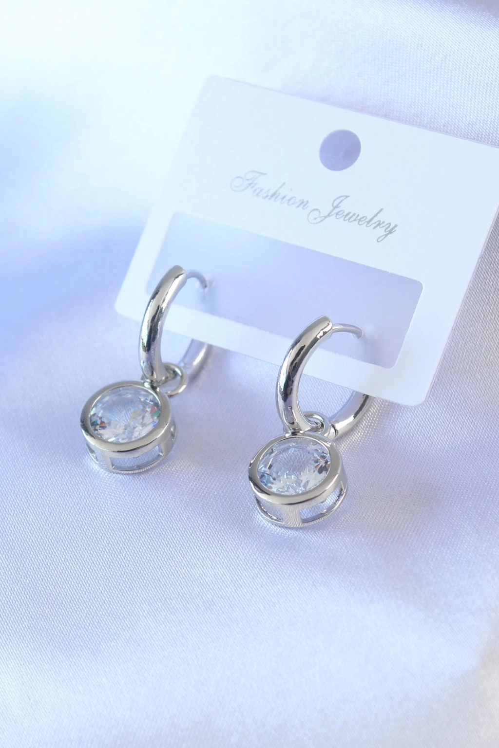 ® Gümüş Renk Zirkon Taşlı Pirinç Kadın Küpe