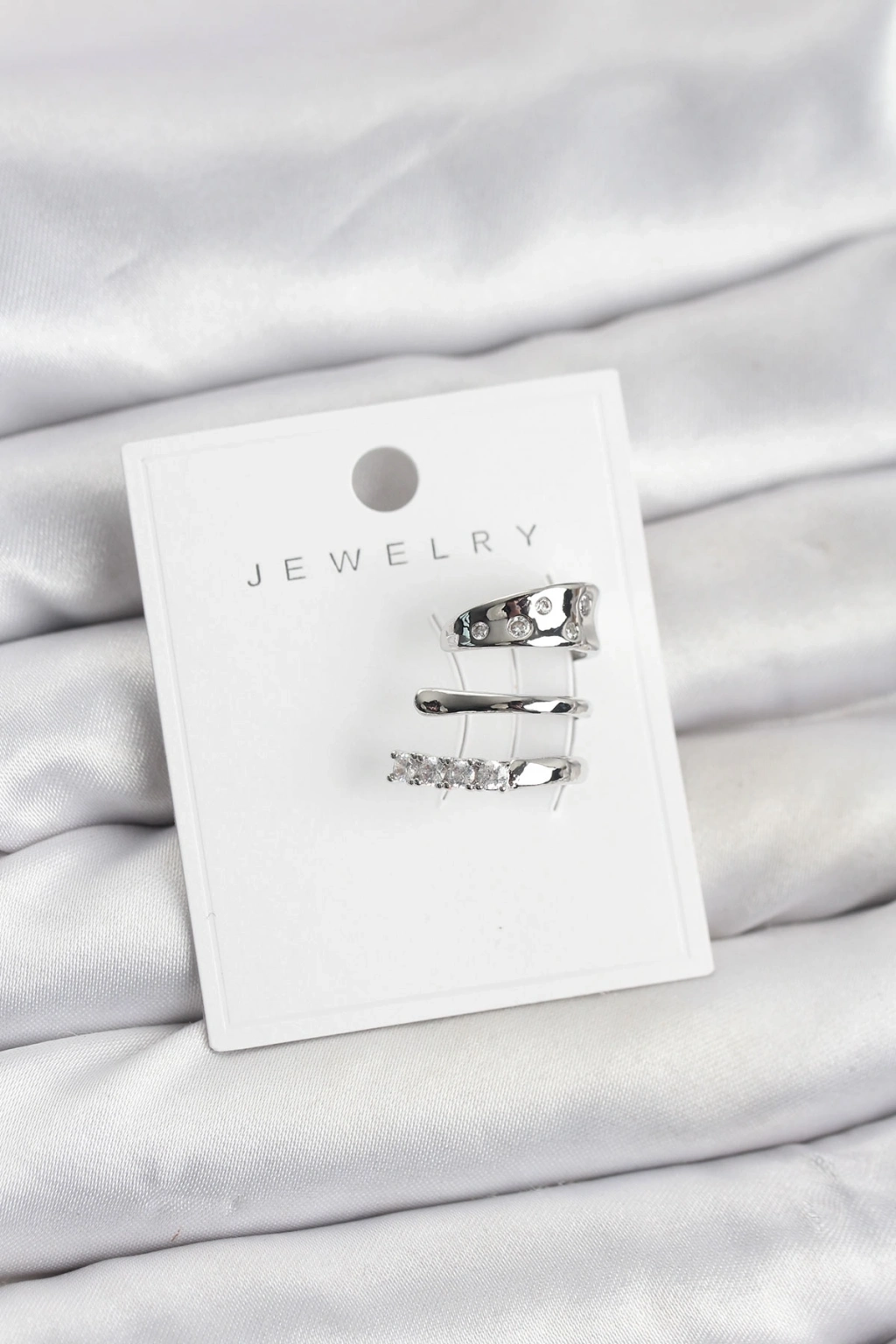 ® Gümüş Renk Zirkon Taşlı Pirinç Kıkırdak Küpe
