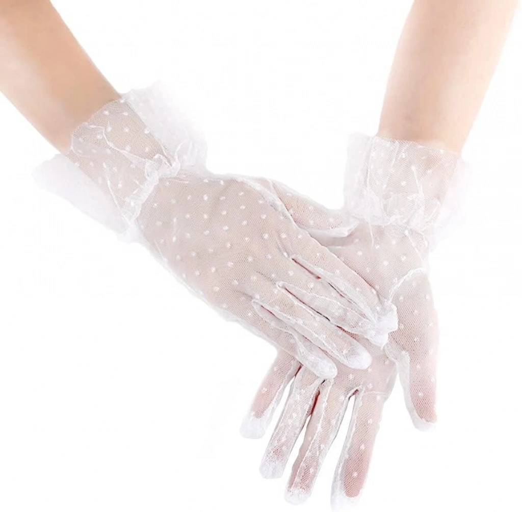 Kısa Boy Güpürlü Beyaz Puantiyeli Tül Eldiven Beyaz Renk