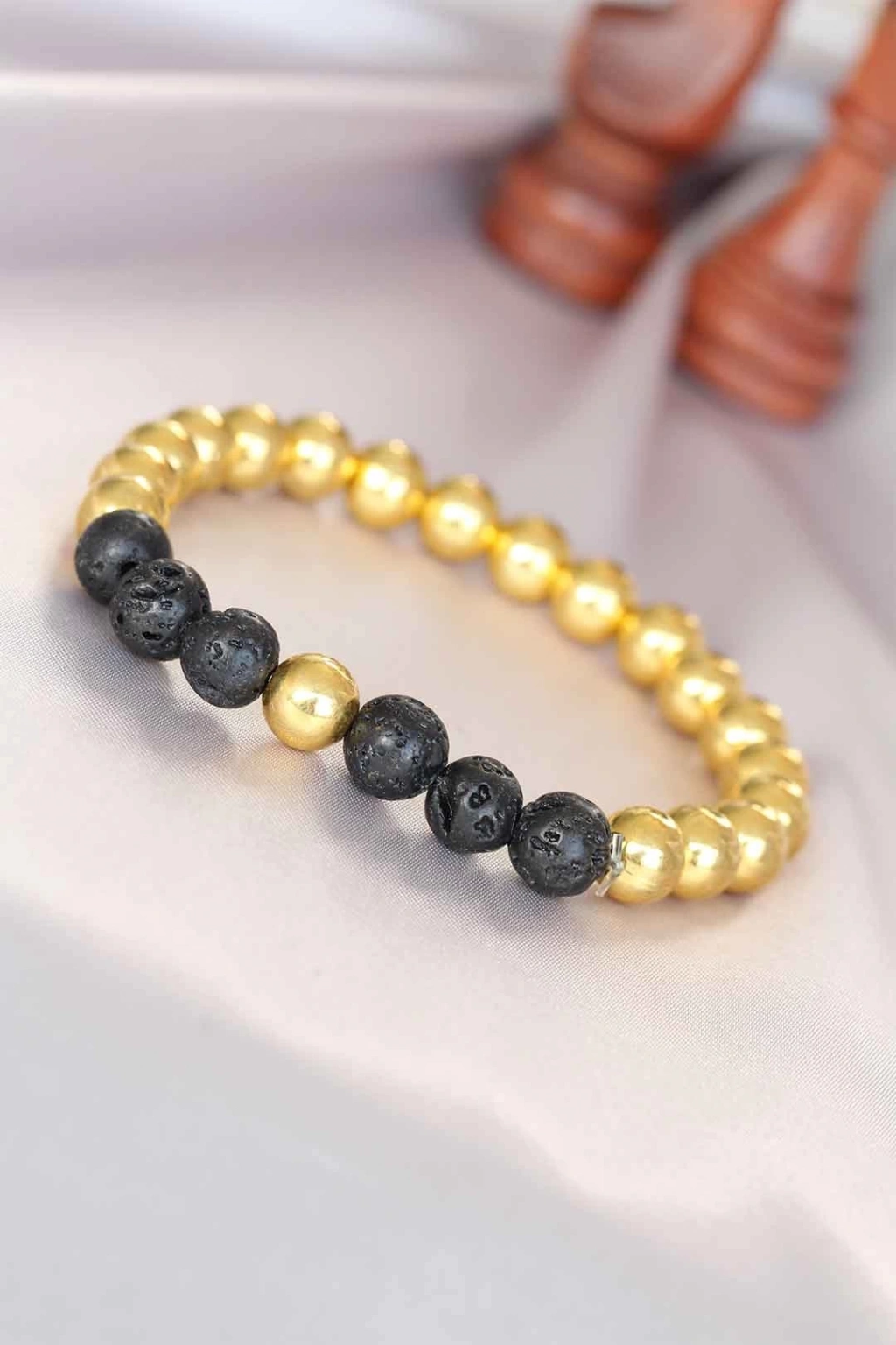 Dikkat çeken kombinlerinizi Lav Doğal Taş Detaylı Hematit Gold Renk Erkek Bileklik ile detaylandırın.