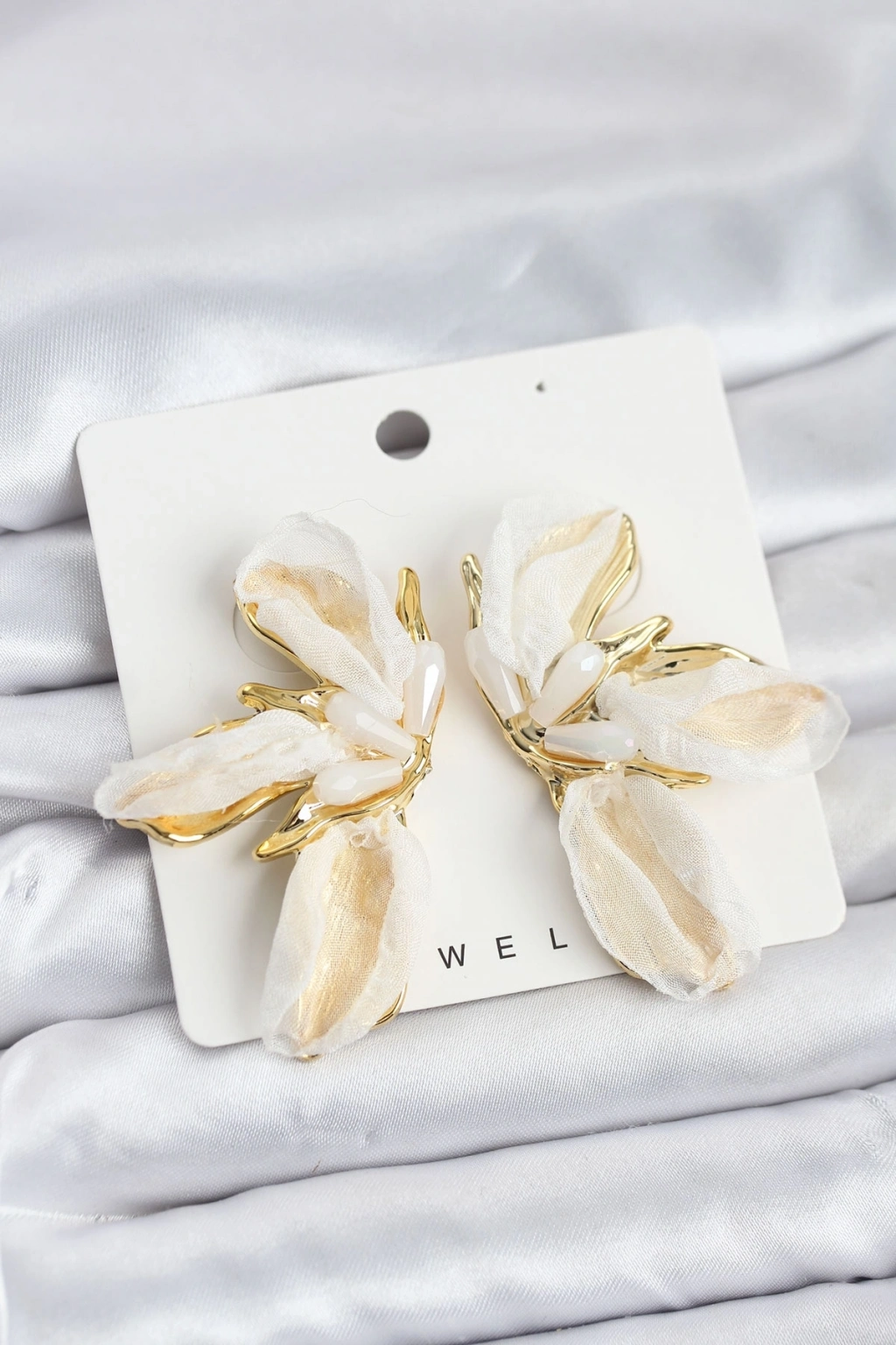 ® Lotus Model Beyaz Renk Tüllü Kadın Küpe