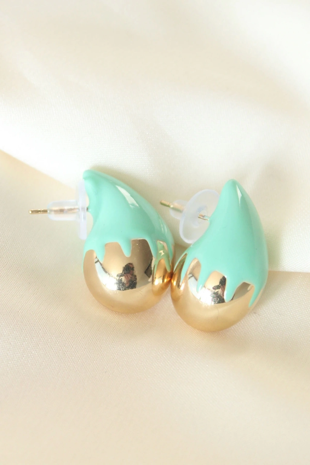 ® Minimal Turkuaz Mineli Çift Renk Damla Küpe