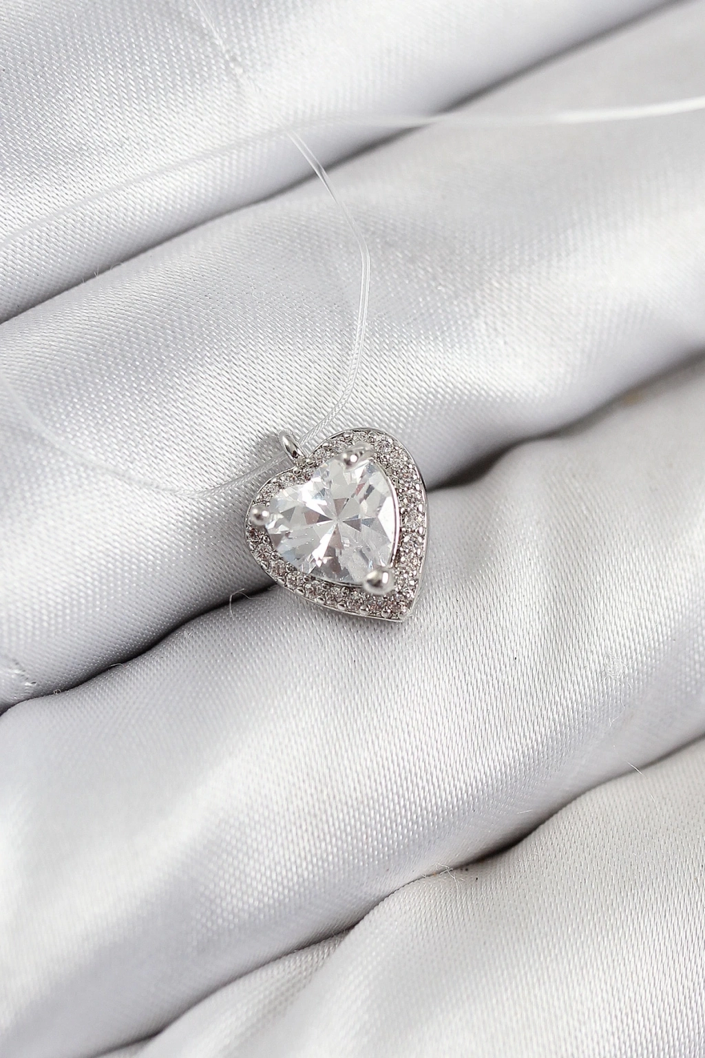 ® Misineli Kalp Model Gümüş Renk Hayalet Kolye