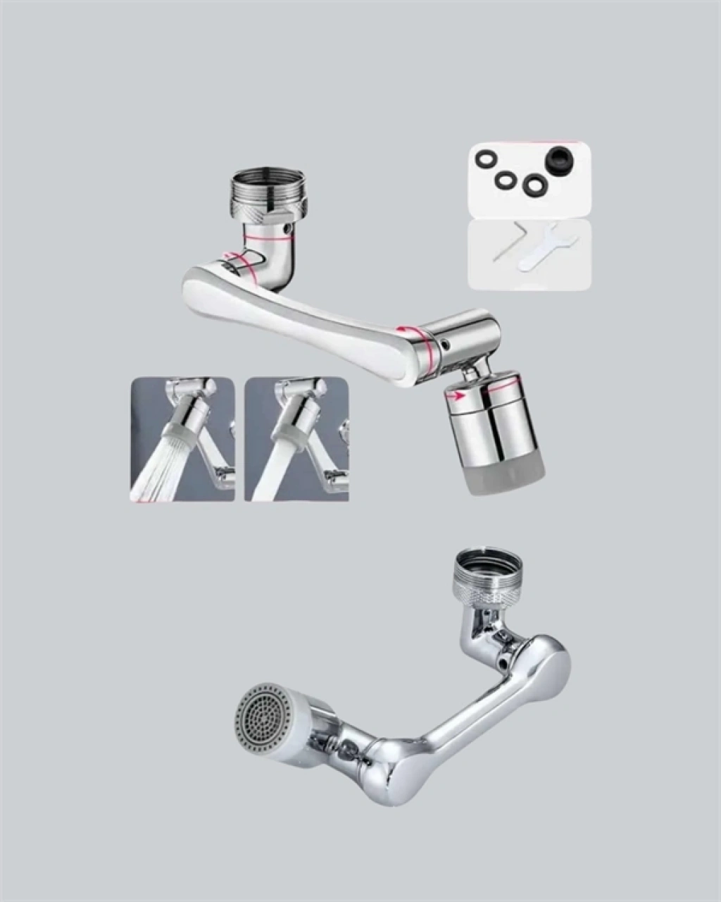 Günlük kullanım için geliştirilmiş olan bu 1080° dönebilen musluk başlığı, evinizdeki lavabo ve muslukları çok daha işlevsel hale getiriyor. Üç eklemli robotik kol sistemi sayesinde toplamda 1080° dönme kapasitesine sahiptir. Bu özel yapı, musluğunuzun sabit yönlü su akışını sınırlamaktan çıkarır, dilediğiniz yöne kolayca yönlendirebilmenizi sağlar. Yukarı, aşağı, sağa veya sola… Suyun nereye akacağını artık siz belirlersiniz.Bu fonksiyonel tasarım, yalnızca konfor sağlamakla kalmaz, temizlik ve hijyen açısından da büyük kolaylık sunar. Yüz yıkama, saç durulama, sebze-meyve temizliği, lavabo içi ve kenarlarının yıkanması gibi işlemler artık çok daha zahmetsiz hale gelir. Özellikle çocuklar, yaşlılar ve engelli bireyler için oldukça ergonomik bir kullanım deneyimi sunar.Cihaz, iki farklı su akışı modu ile donatılmıştır:Köpüklü Akış (Soft Mode): Oksijenle zenginleştirilmiş yumuşak su akışıyla ellerinizi ve yüzünüzü daha konforlu şekilde yıkayabilirsiniz.Güçlü Sprey Modu: Yüksek basınçlı, geniş yüzeyli akışla lavabo, bulaşık veya sebzeleri hızlı ve etkili şekilde durulayabilirsiniz.Modlar arasında geçiş yapmak son derece basittir; başlığın ucundaki halka çevirilerek anında değiştirilebilir.Ürün yalnızca pratik değil, aynı zamanda dayanıklıdır. Katı pirinç gövdesi, uzun ömürlü kullanım sunar ve paslanmaya karşı yüksek dirençlidir. İç kısmındaki 4 katmanlı filtre sistemi, musluk suyunu daha sağlıklı hale getirir; partikülleri ve kirliliği süzerek temiz akış sağlar.Kurulum için ekstra araç gerekmez. Ürün, standart musluklara uygundur ve kutu içeriğinde yer alan adaptör sayesinde farklı diş yapılarıyla da kolayca uyum sağlar. Tak-çalıştır mantığıyla birkaç dakikada monte edebilirsiniz.Sonuç: Hem modern tasarımıyla evinizin şıklığını bozmayan hem de fonksiyonelliğiyle gündelik hayatı kolaylaştıran bu musluk başlığı; mutfak, banyo ve ofis lavaboları için akıllı ve ekonomik bir tercihtir.