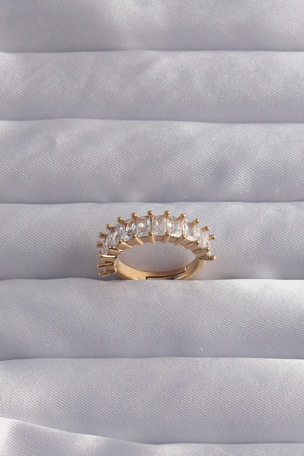 ® Pirinç Ayarlamalı Gold Renk Baget Taşlı Su Yolu Yüzük