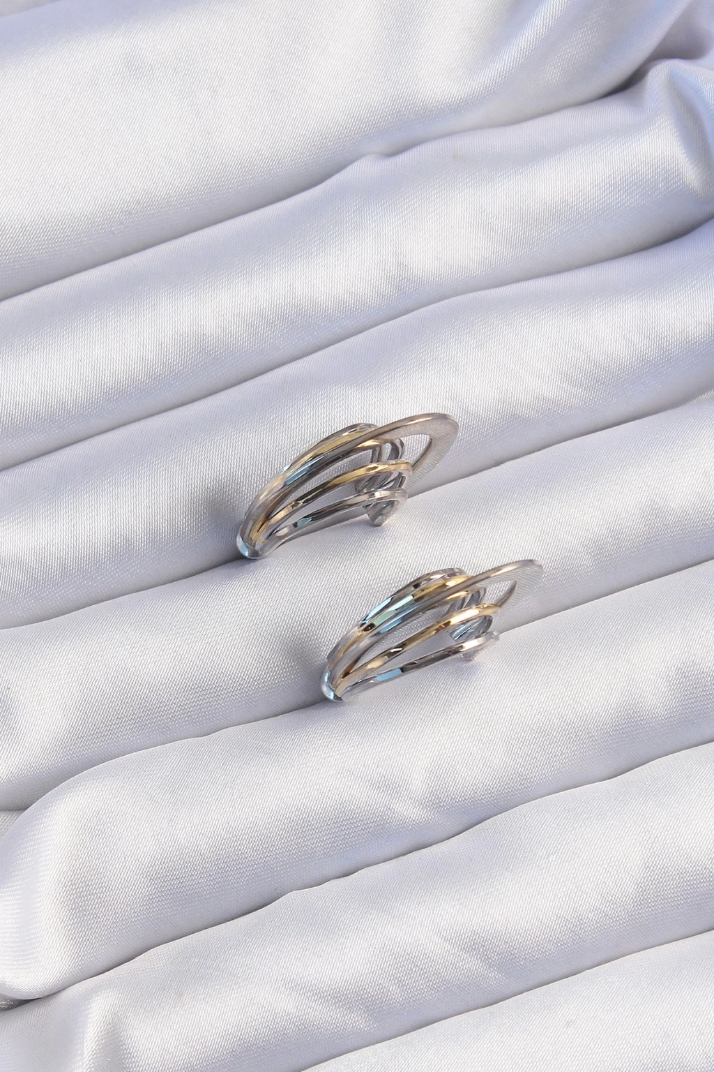 ® Pirinç Gold Gümüş Renkli Düz Plaka Halka Küpe