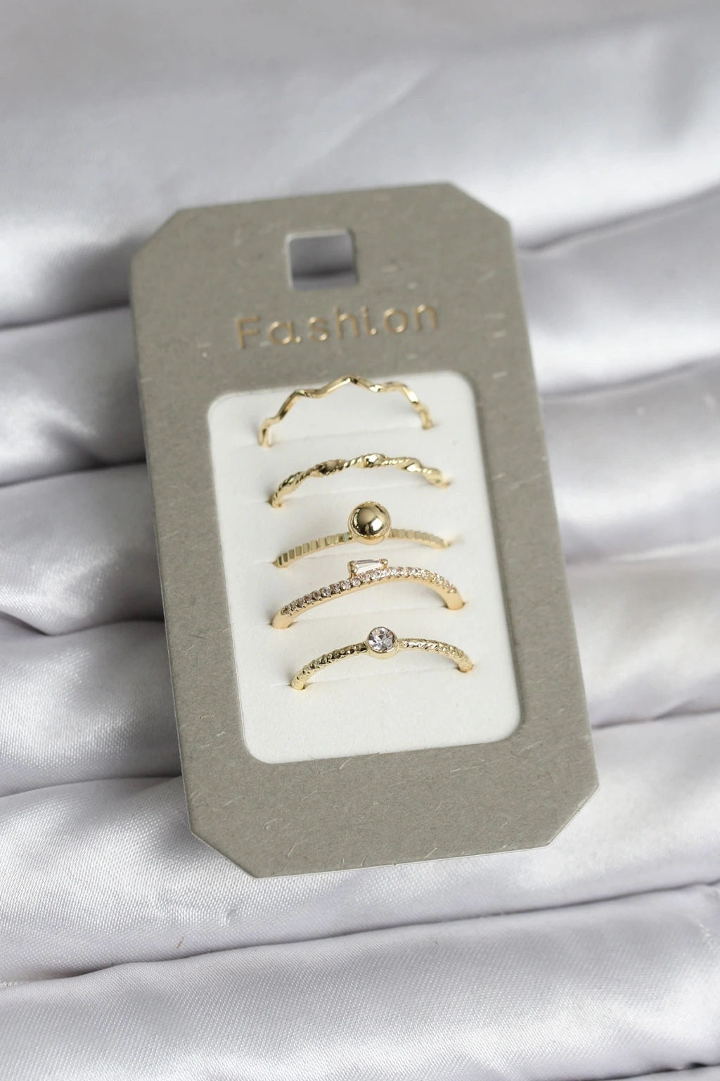 ® Pirinç Gold Renk 5'li Yüzük Seti
