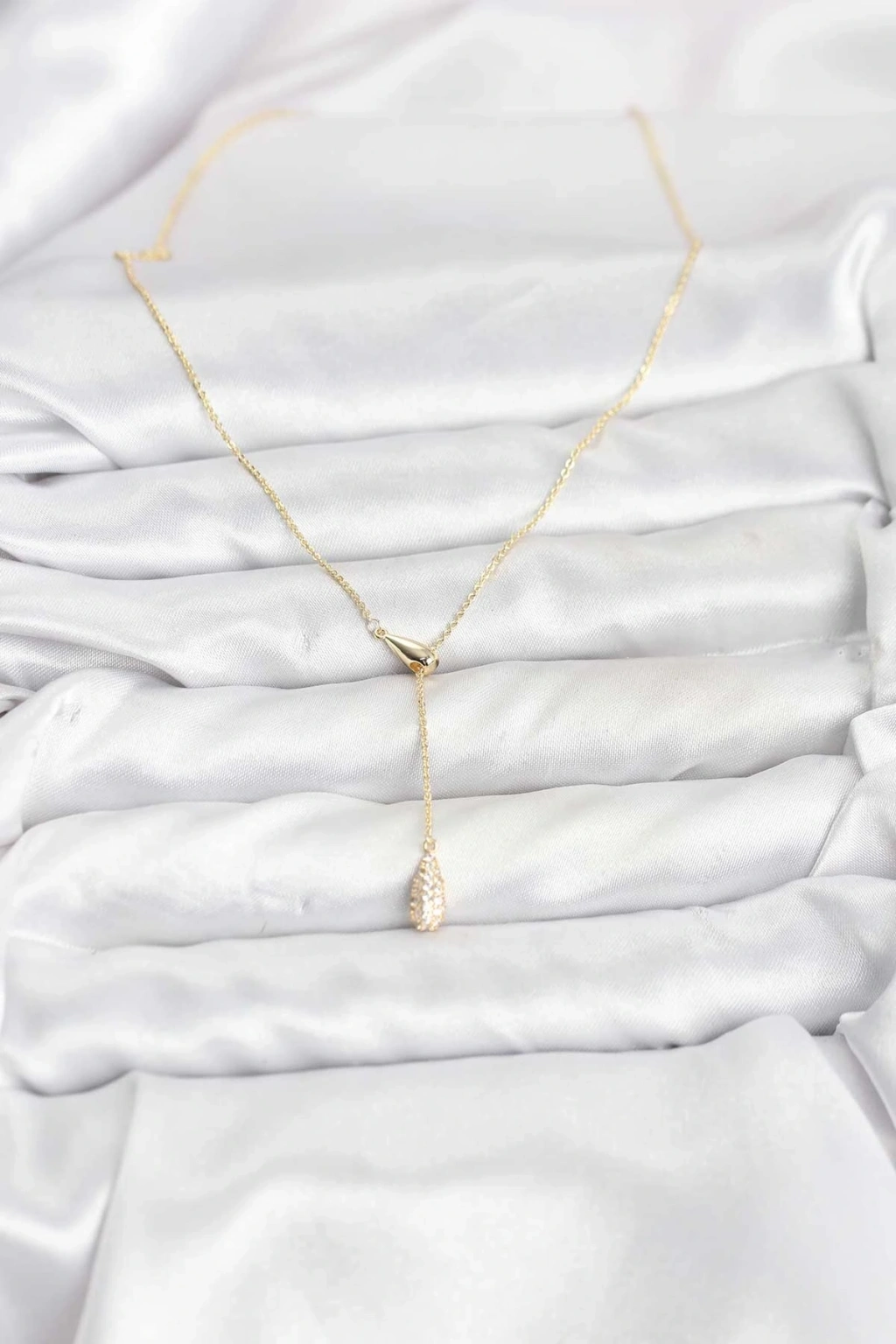® Pirinç Gold Renk Asansörlü Damla Model Kadın Kolye