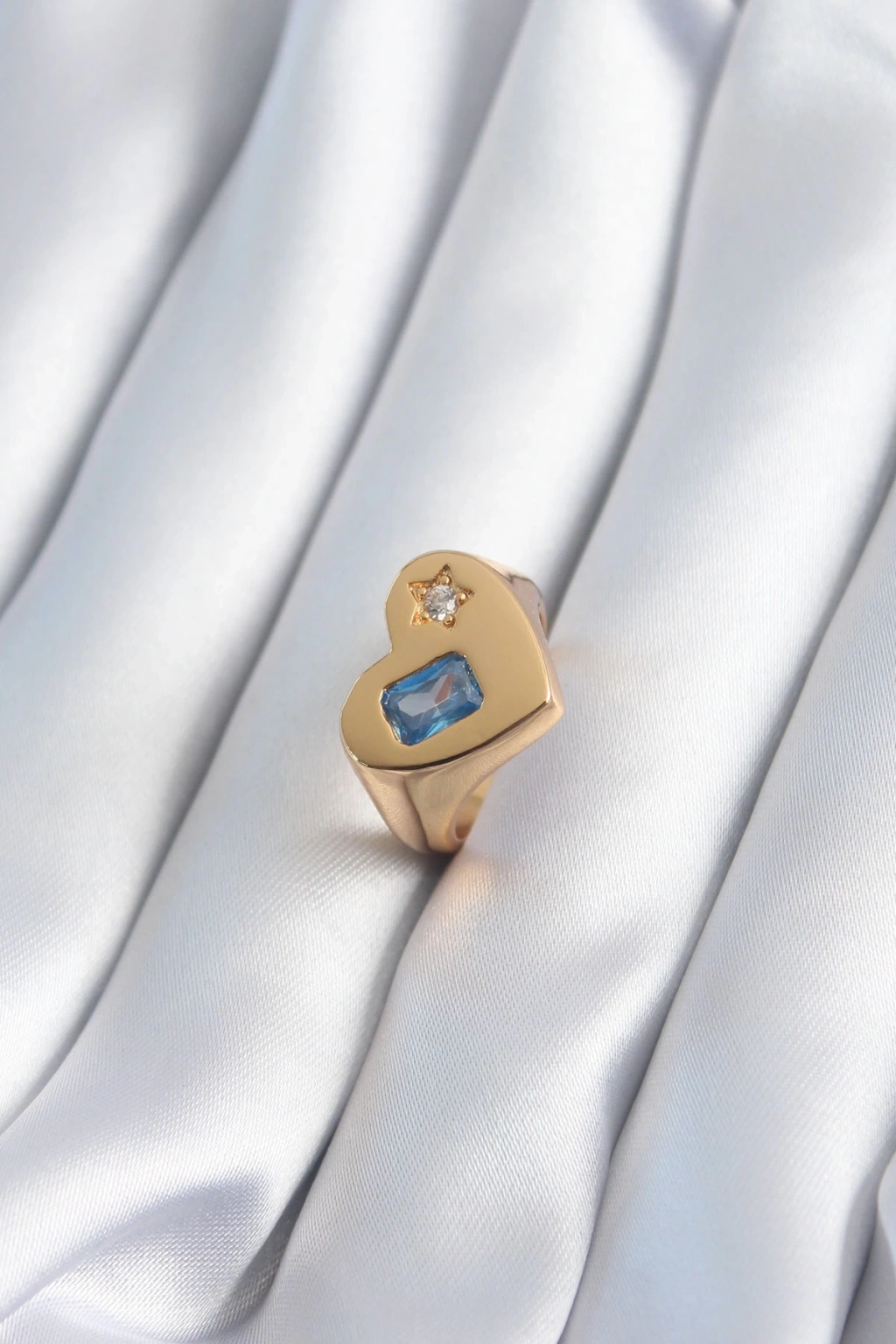 ® Pirinç Gold Renk Kalp Model Zirkon Taş Yıldız Detay Kadın Yüzük
