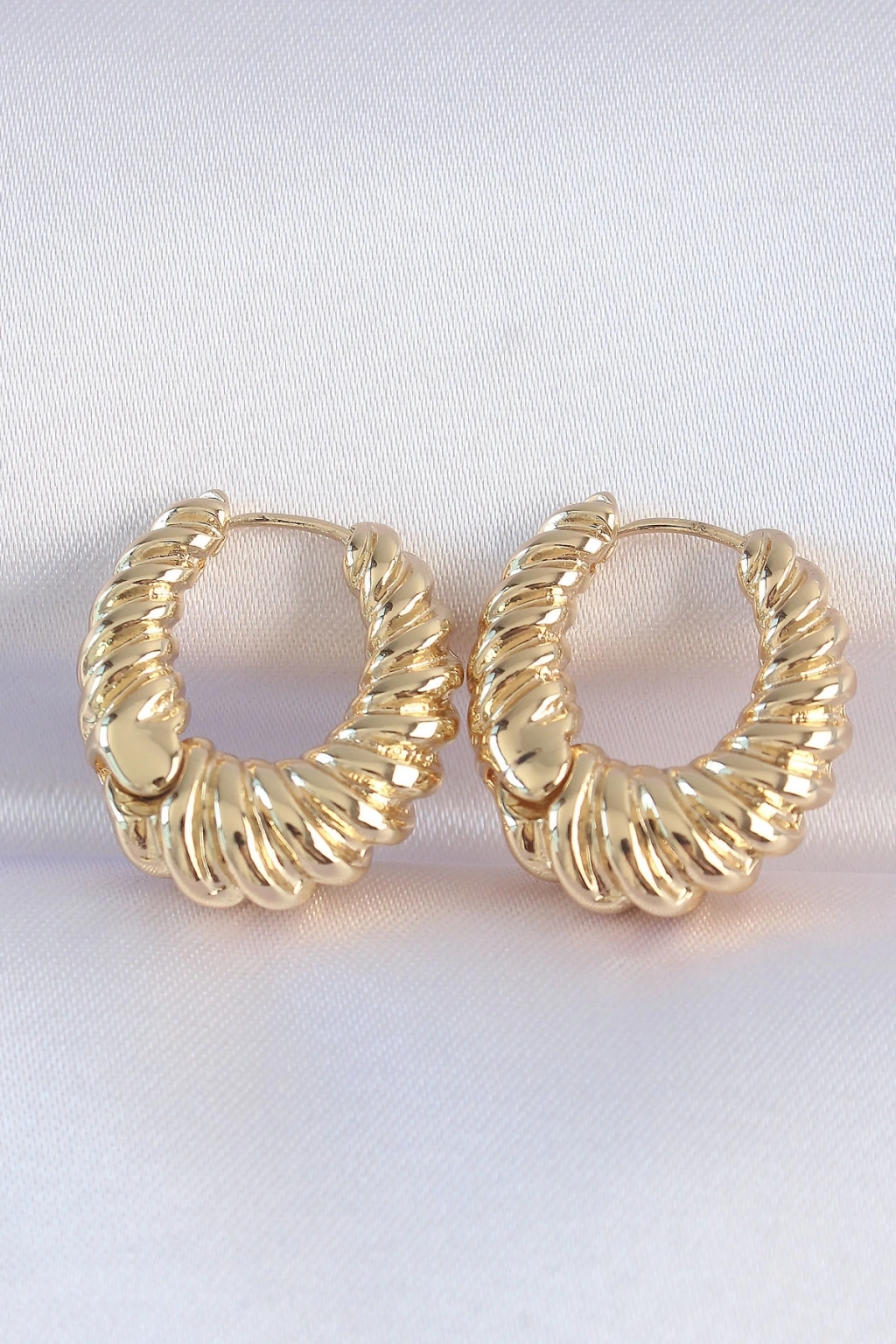 ® Pirinç Gold Renk Tırtık Detay Bombeli Halka Küpe