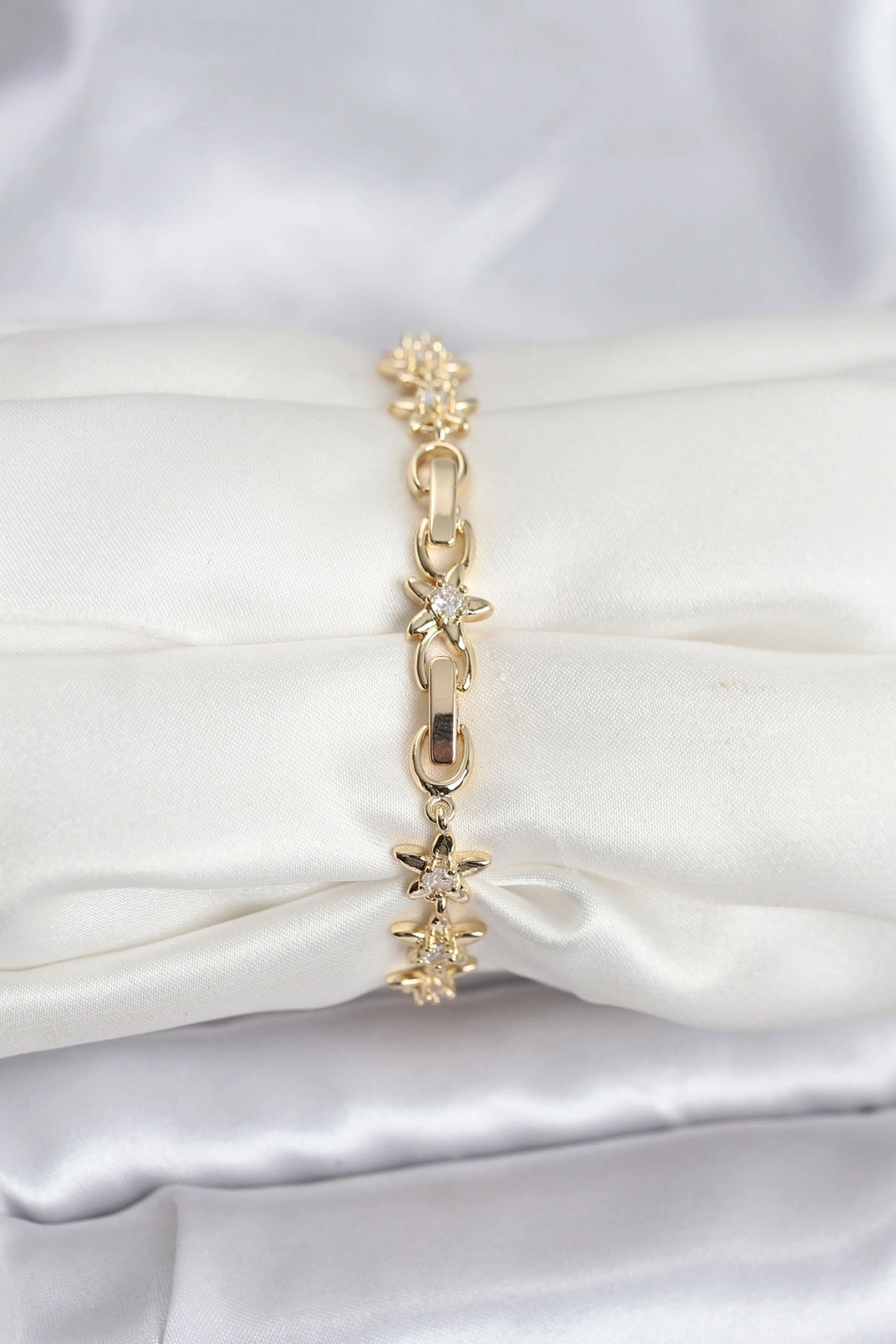 ® Pirinç Gold Renk VIP Seri Sıralı Taşlı Yıldız Model Zirkon Taşlı Kadın Bileklik