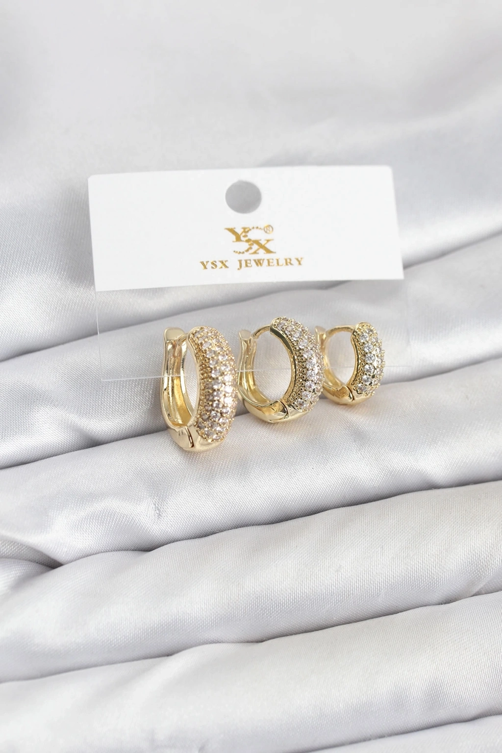 ® Pirinç Gold Renk Zirkon Taşlı Halka Model YSX Trio Küpe Seti