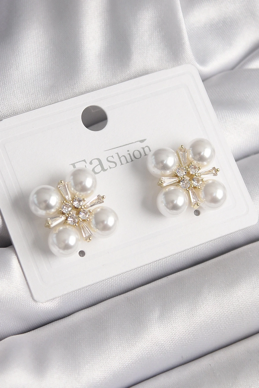 ® Pirinç Gold Renk Zirkon Taşlı İncili Kadın Küpe