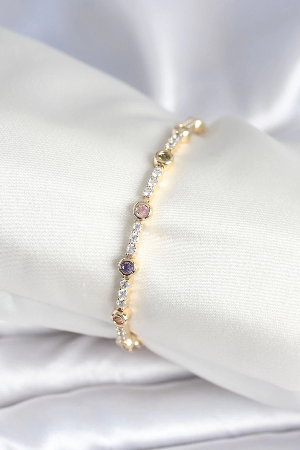 ® Pirinç Gold Renk Zirkon Taşlı Kadın Bileklik