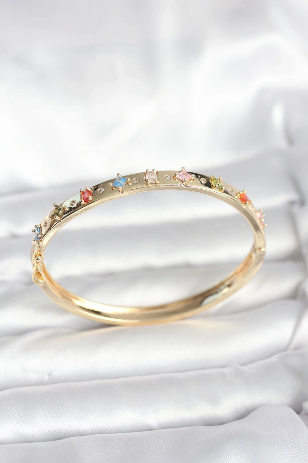 ® Pirinç Gold Renk Zirkon Taşlı Kelepçe Bileklik
