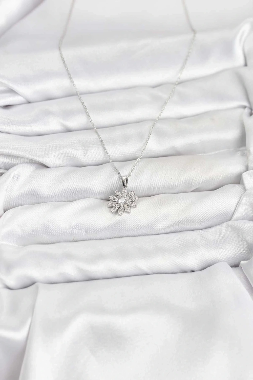® Pirinç Gümüş Renk Çiçek Model Kadın Kolye