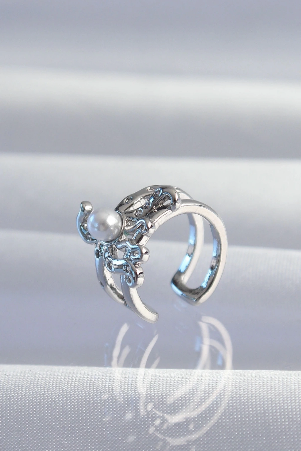 ® Pirinç Gümüş Renk İncili Ahtapot Earcuff Küpe
