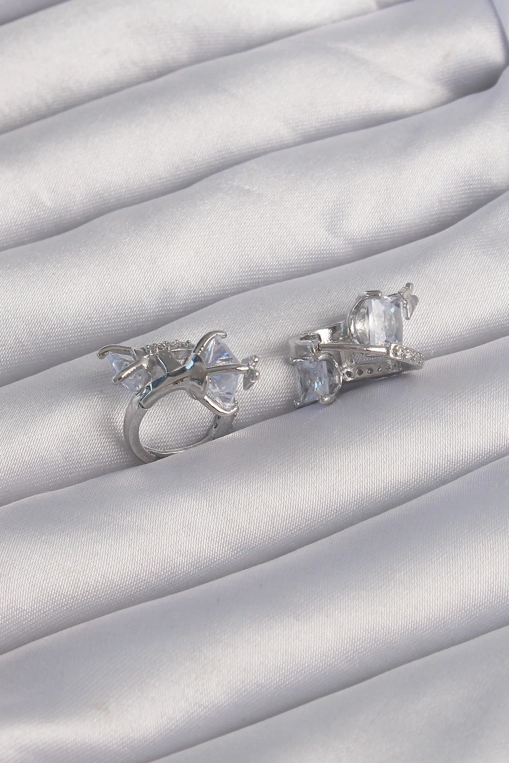 ® Pirinç Gümüş Renk İri Zirkon Taşlı Kıvrımlı Minimal Kelebekli Halka Küpe