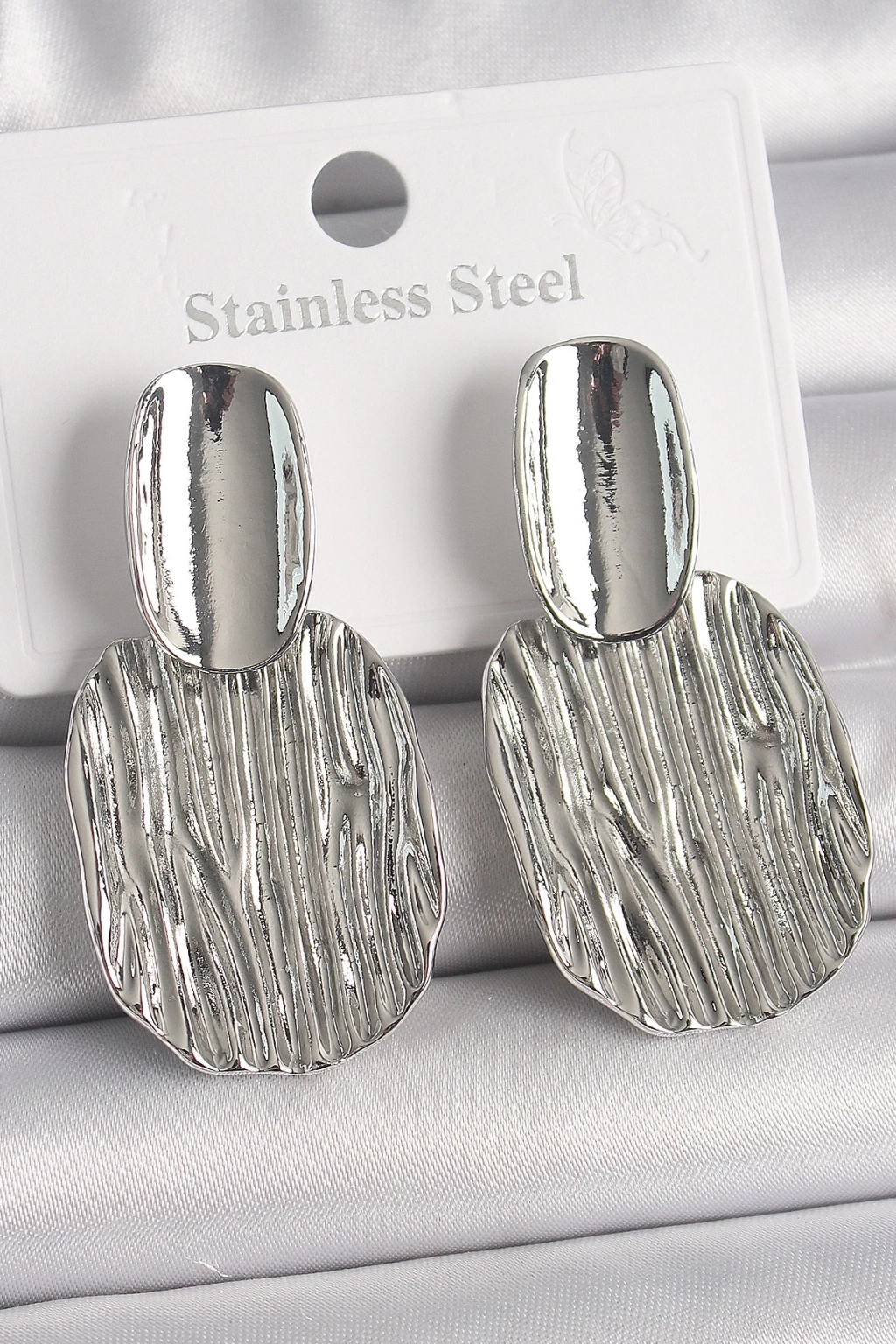 ® Pirinç Gümüş Renk İşlemeli Kare Plaka Model Kadın Küpe
