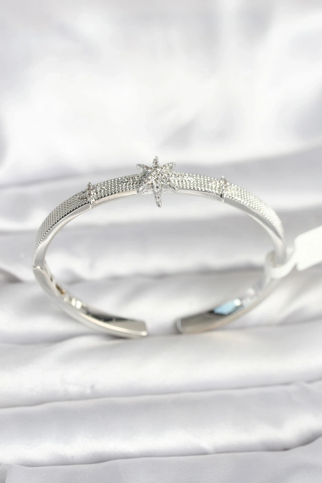 ® Pirinç Gümüş Renk Kutup Yıldızı Model Kadın Kelepçe Bileklik