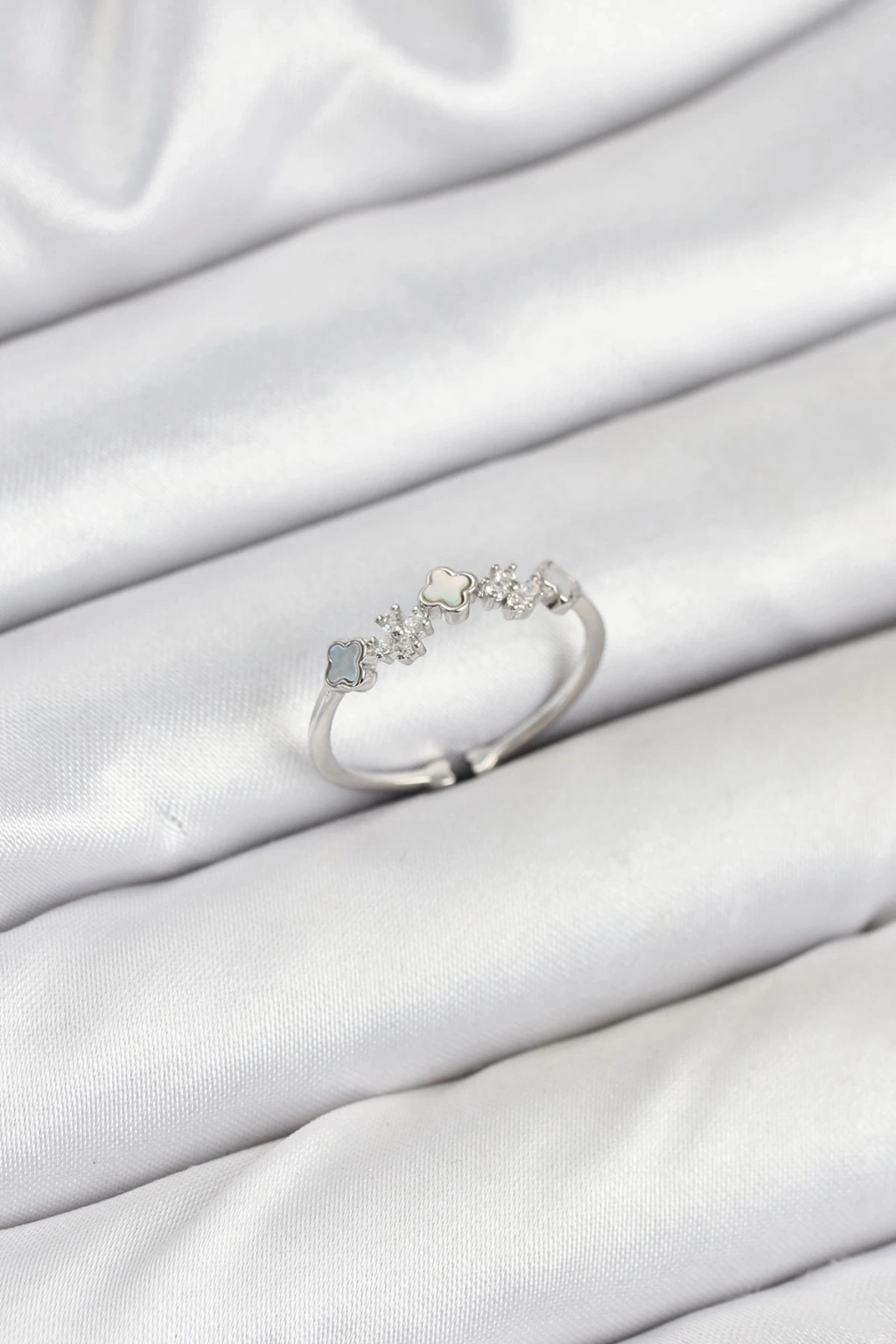 ® Pirinç Gümüş Renk Minimal Yonca Detaylı Kadın Yüzük