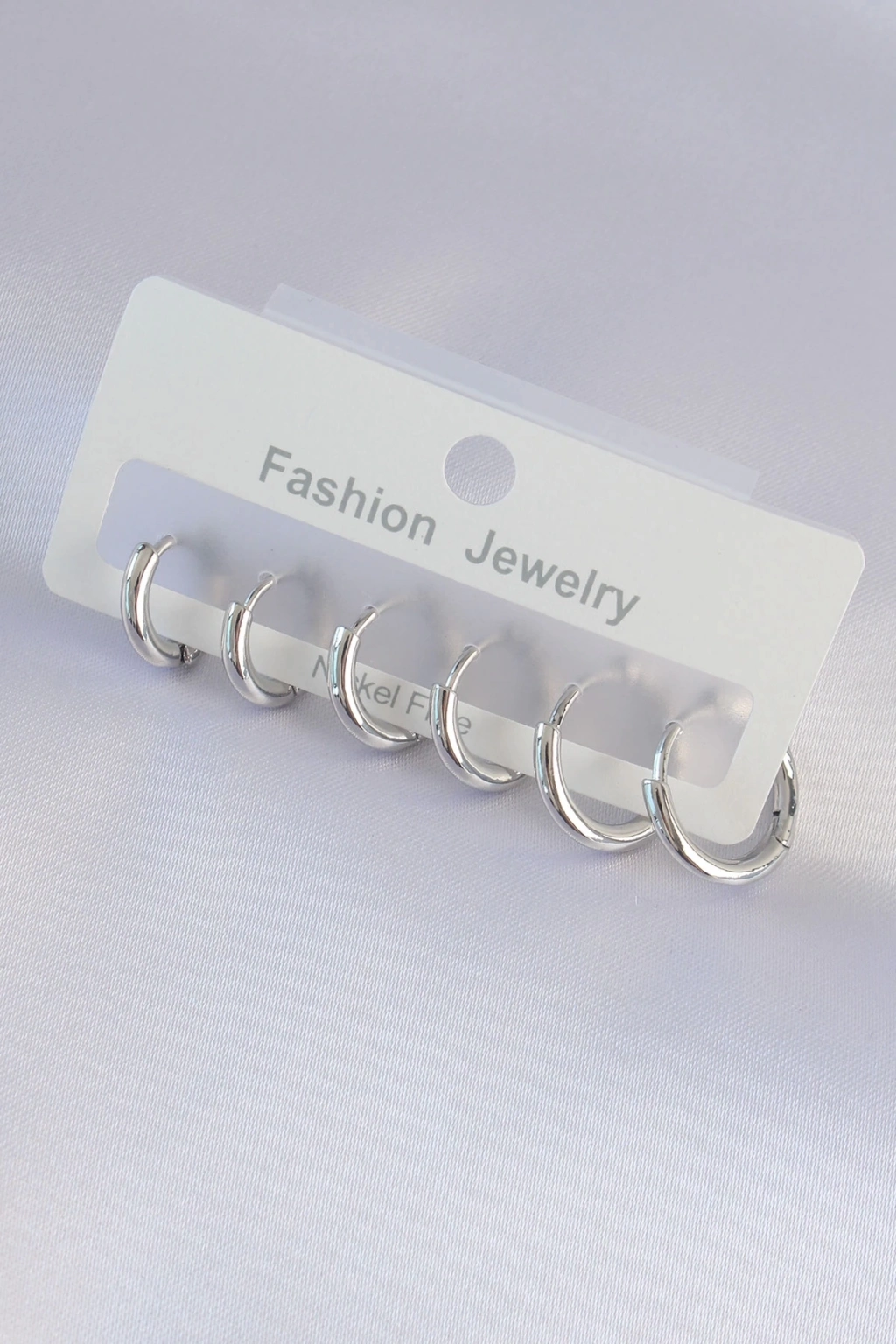 ® Pirinç Gümüş Renk Oval Küpe Seti
