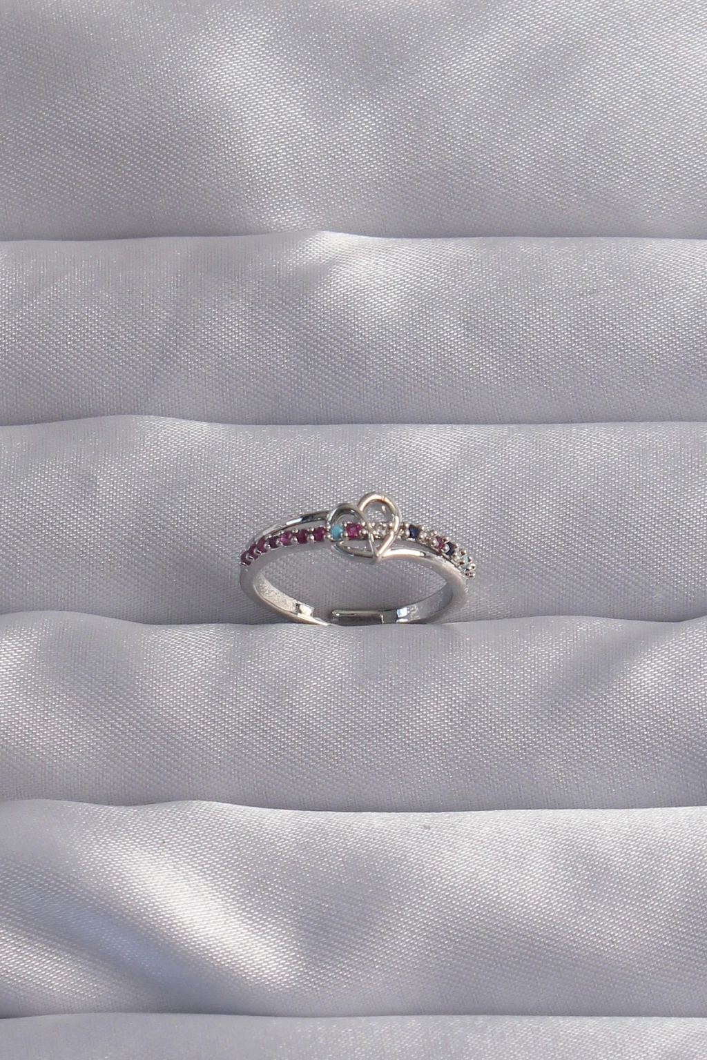 ® Pirinç Gümüş Renk Renkli Zirkon Taşlı Ayarlamalı Yüzük