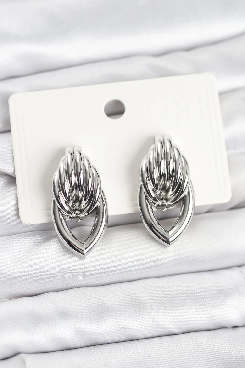 ® Pirinç Gümüş Renk Sarmal Damla Model Vintage Kadın Küpe