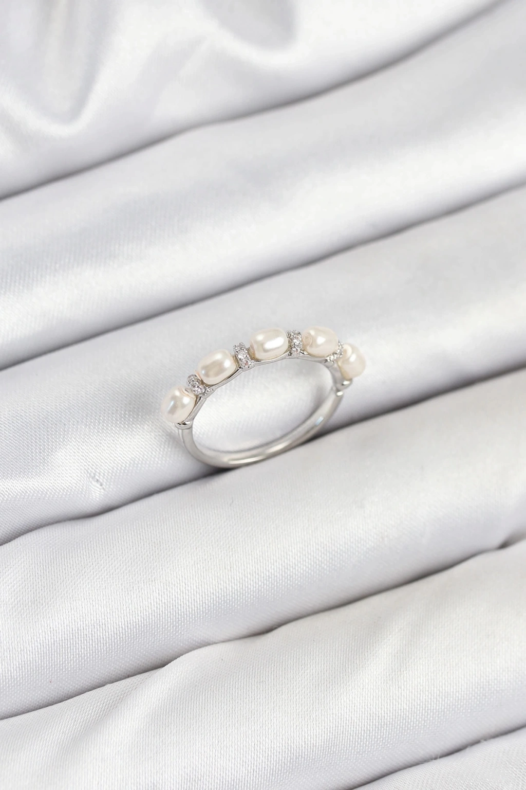 ® Pirinç Gümüş Renk Sıralı İncili Kadın Yüzük