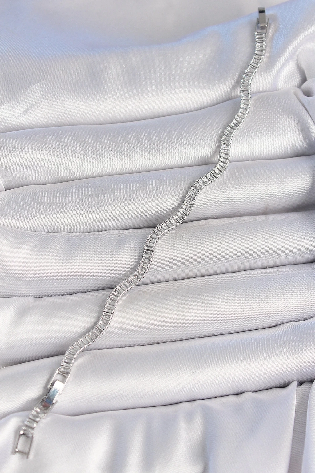 ® Pirinç Gümüş Renk Su Yolu Zirkon Taşlı Model Kadın Bileklik