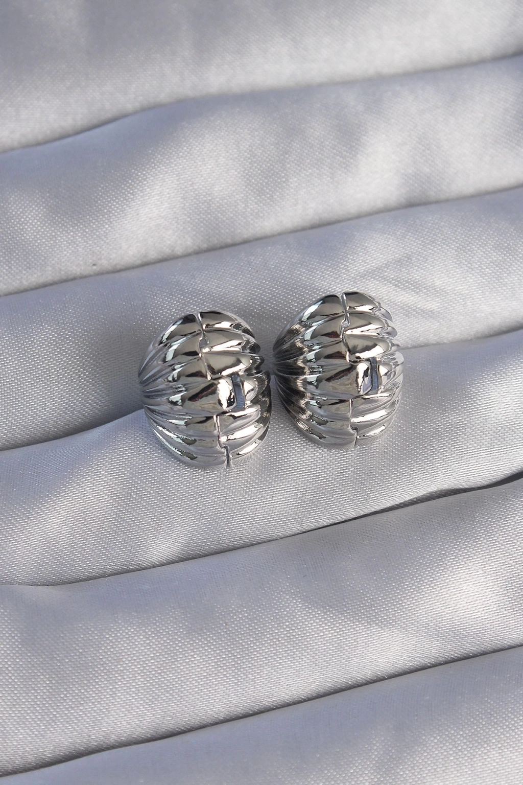 ® Pirinç Gümüş Renk Tırtıklı Minimal Bombeli Tasarım Küpe