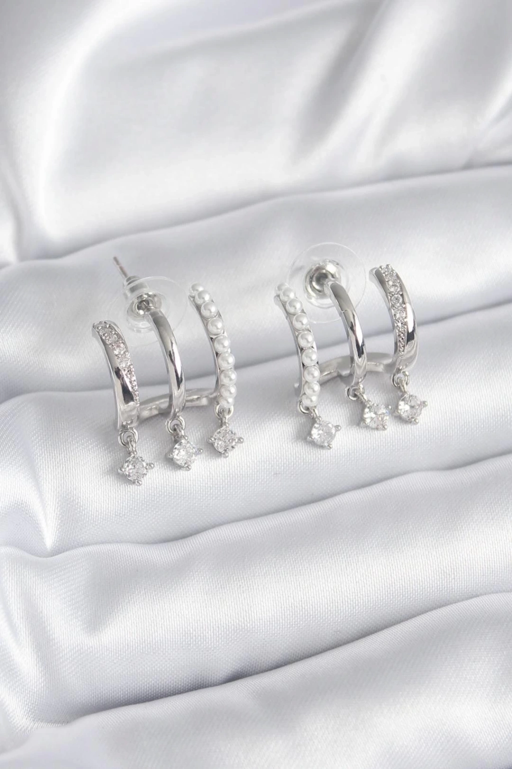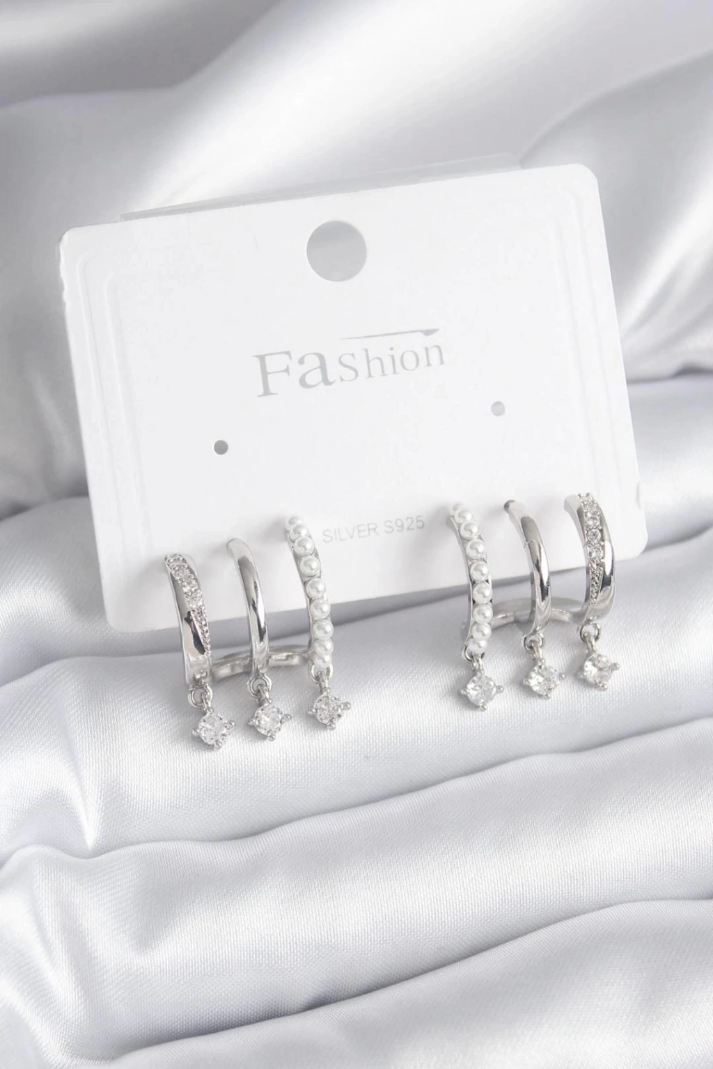 ® Pirinç Gümüş Renk Zirkon Taş Detay İncili Kadın Küpe
