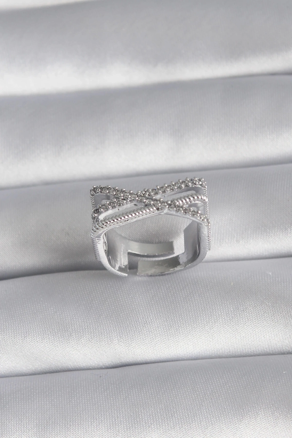 ® Pirinç Gümüş Renk Zirkon Taş Detay Kadın Yüzük