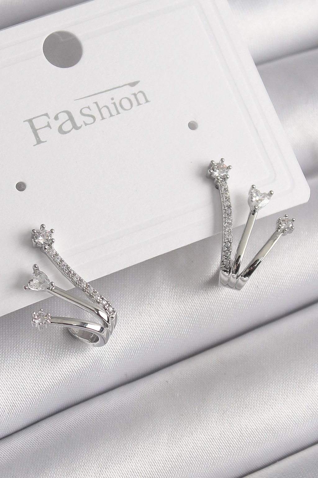 ® Pirinç Gümüş Renk Zirkon Taşlı Kadın Küpe