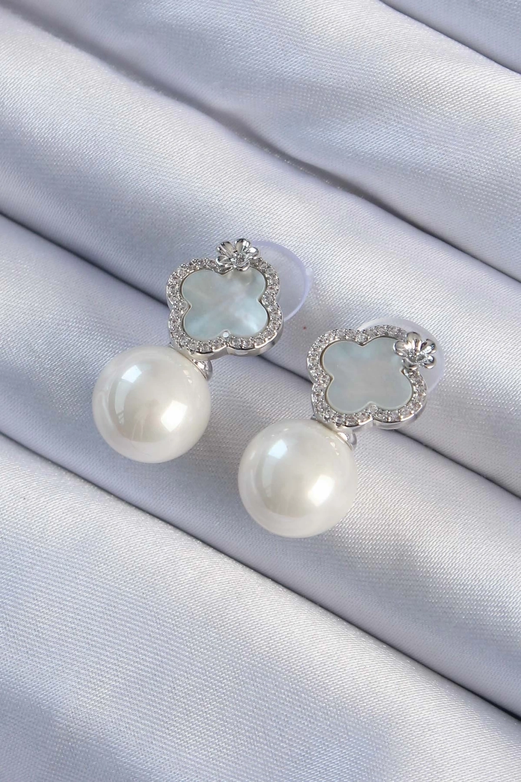 ® Pirinç Gümüş Renk Zirkon Taşlı Minimal Çiçek Tasarımlı Kadın Küpe