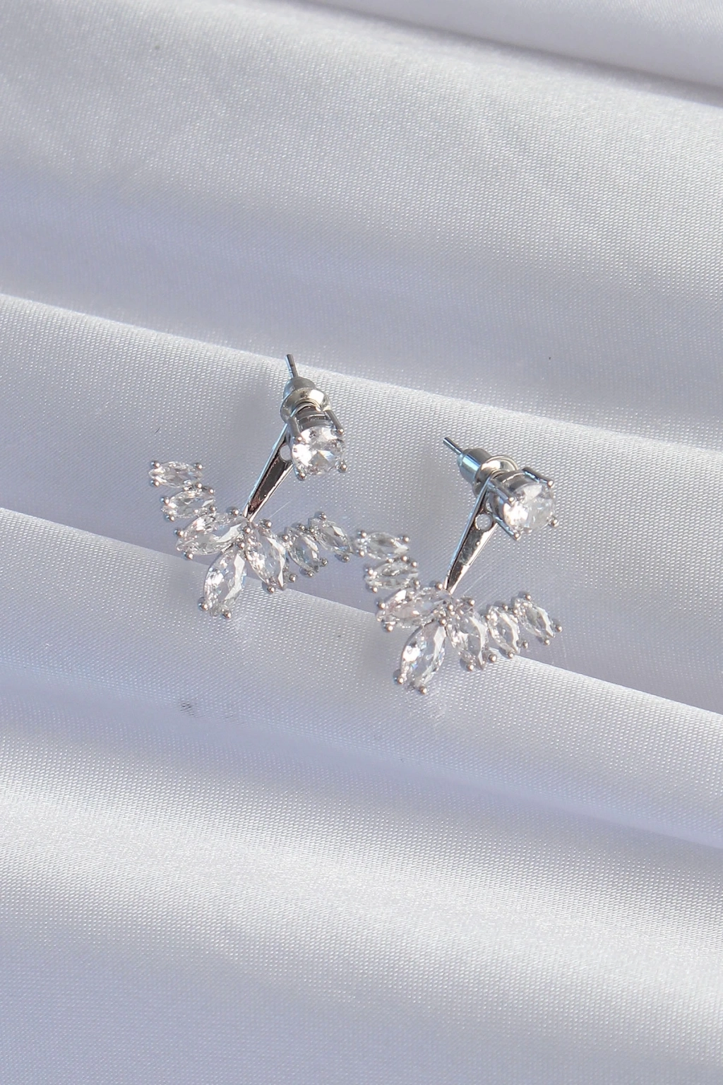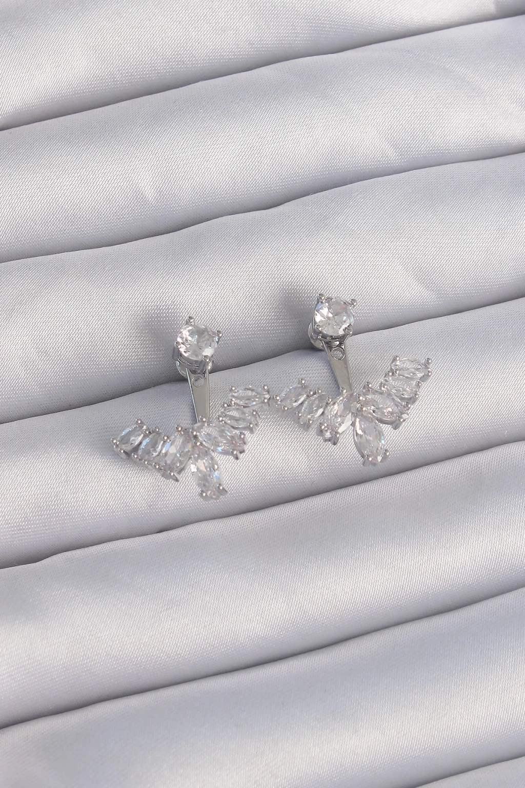 ® Pirinç Gümüş Renk Zirkon Taşlı V Model Küpe