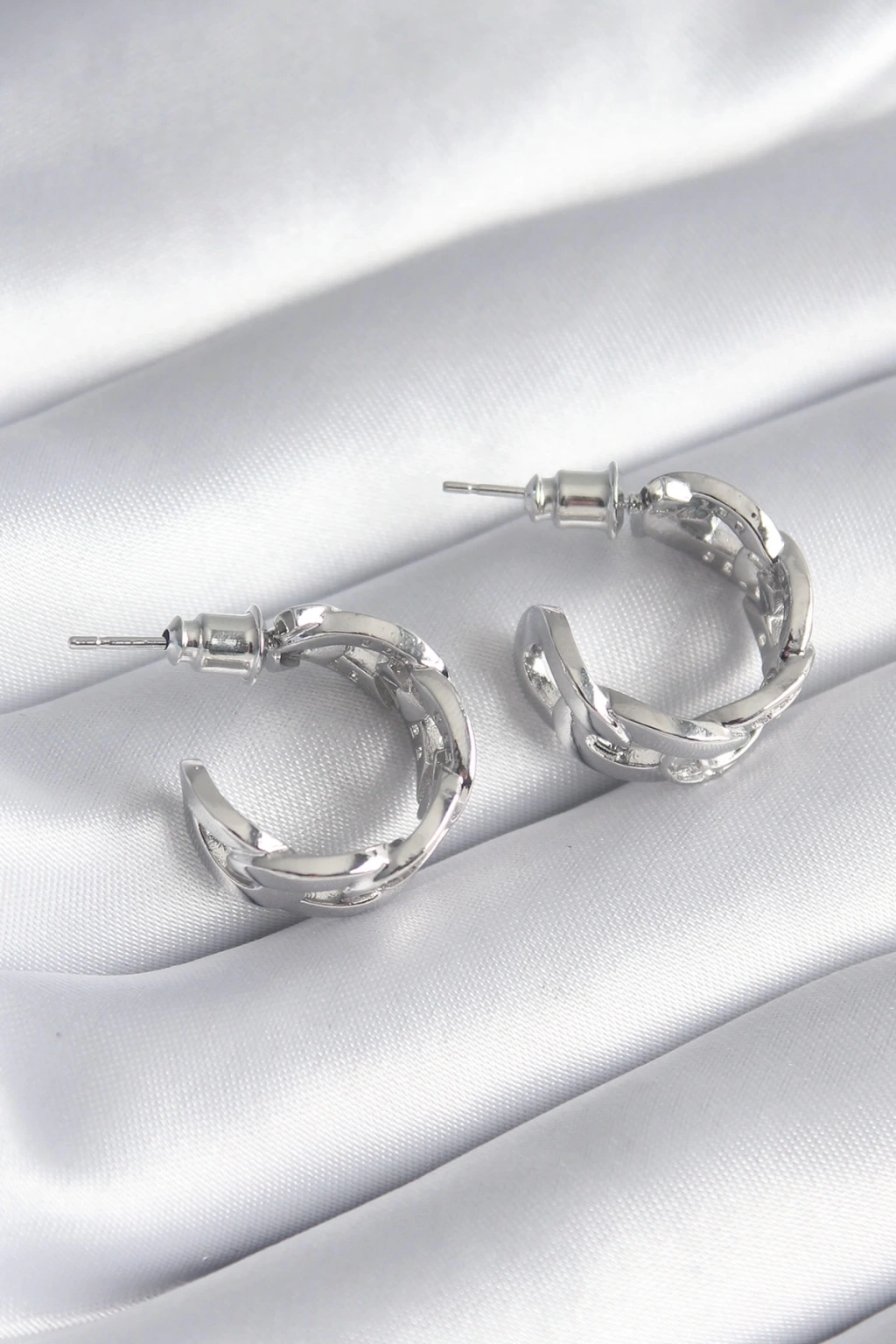 ® Pirinç Gümüş Renk Zirkon Taşlı Zincir Model Kadın Küpe