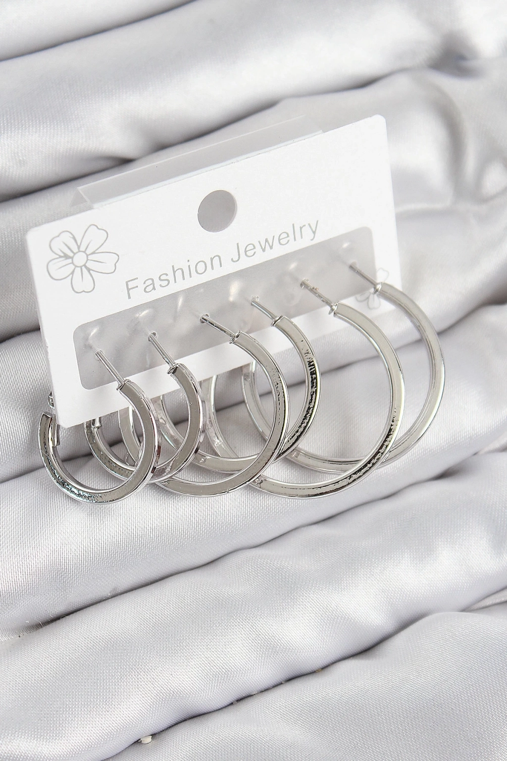 ® Pirinç Halka Model Gümüş Renk Kadın Set Küpe