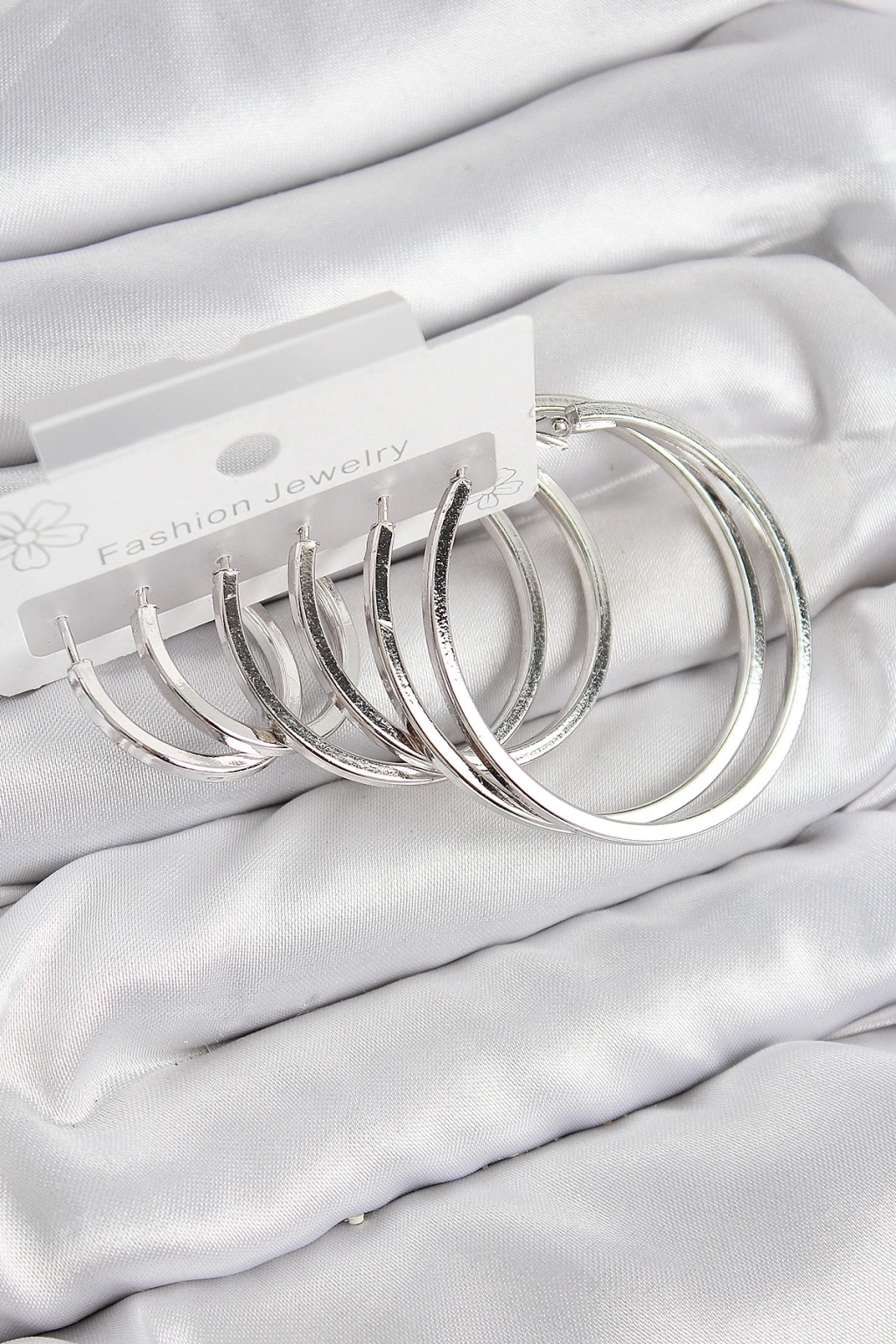 ® Pirinç Halka Model Gümüş Renk Kadın Set Küpe