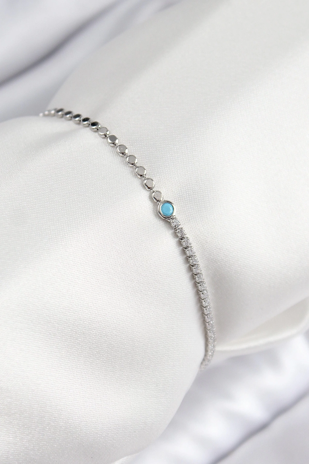 ® Pirinç Zirkon Taşlı Boncuk Model Ezme Zincir Gümüş Renk Kadın Bileklik