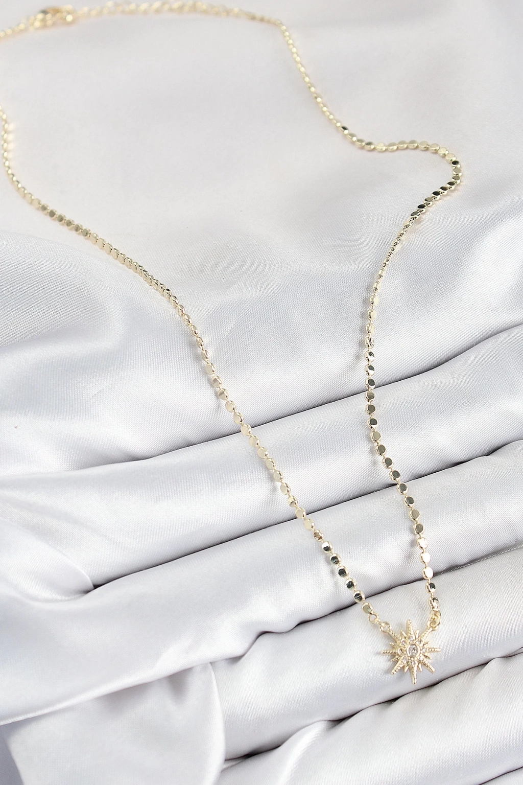 ® Pirinç Zirkon Taşlı Kutup Yıldızı Model Ezme Zincir Gold Renk Kadın Kolye