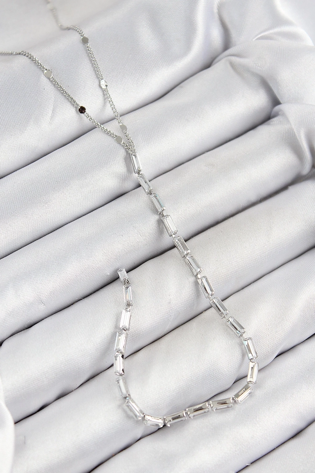 ® Pirinç Zirkon Taşlı Model Gümüş Renk Y Kolye