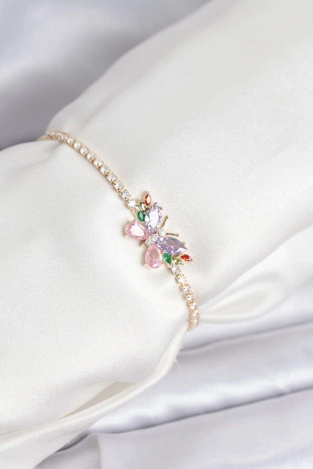 ® Renkli Kelebek Model Zirkon Taşlı Asansörlü Su Yolu Kadın Bileklik