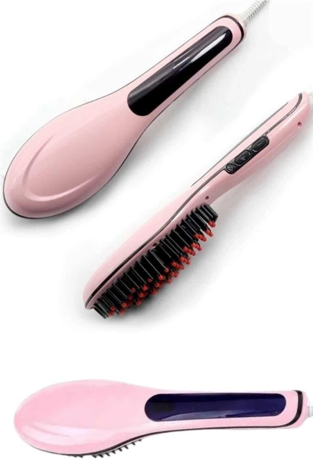 Saç Düzleştirme Tarak LCD Ekran Dijital Fırça Demir Şekillendirici, evde ve salonda kullanılabilen profesyonel bir saç şekillendirme aracı olarak tasarlanmıştır. Hem erkekler hem de kadınlar için uygundur, kullanımı kolay ve etkili sonuçlar sunar. Bu ürün, saçı düzleştirmek ve şekil vermek isteyenler için mükemmel bir tercihtir. İşte ürünün detaylı özellikleri:Özellikler: 100 Seramik Turmalin Isı Plakası: Seramik kaplama, daha homojen ısıtma sağlar ve saçı korur. Bu teknoloji, saçın daha pürüzsüz ve sağlıklı görünmesine yardımcı olur. Düşük Sıcaklıkta Güvenlik: Ürün maksimum sıcaklığa ulaştığında, kırmızı uçlar yalnızca 50°C'ye kadar ısınır, bu da kullanıcıların güvenli bir şekilde kullanım yapmasını sağlar. Yüksek ısılara karşı endişelenmenize gerek yoktur. Negatif İyon Teknolojisi: Fırçanın yüzeyindeki anyon enjeksiyon delikleri, çalışırken saçı oksidasyon ve kırılmalardan korur. Aynı zamanda saçı nemlendirir ve elektriklenmesini önler. LCD Dijital Ekran: Kullanım esnasında sıcaklık ayarları, dijital LCD ekran üzerinden rahatça takip edilebilir. Bu, kullanıcılara tam kontrol sağlar ve işlemi daha kolay hale getirir. Gelişmiş PTC Seramik Isıtıcı: Hızlı ısınma ve sabit ısı dağılımı sağlar, böylece istediğiniz sonuçları daha hızlı elde edebilirsiniz. PTC teknolojisi enerji verimliliği de sağlar. Çift Voltaj Özelliği: Dünya çapında kullanım için uygundur. 110V-230V arası voltaj desteği sunar, bu sayede AB, ABD, İngiltere ve Avustralya gibi farklı bölgelerde rahatlıkla kullanılabilir.Teknik Özellikler: Güç: 29W Tabak: Seramik Renk Seçenekleri: Pembe, Siyah Isıtıcı Teknolojisi: PTC Maksimum Sıcaklık: 230°C / 450°F Sıcaklık Kontrol Aralığı: 80°C ile 230°C arasında ayarlanabilir Voltaj: 110V-230V (AB, ABD, İngiltere, Avustralya adaptörleri eklenebilir) Ürün Boyutu: 27.5 cm x 7 cm x 4 cm Net Ağırlık: 430g Dönme Özelliği: Döner güç kablosu ile kolay kullanım sağlar.Bu saç düzleştirici, günlük kullanımlar için ideal olup, bukleler, dalgalar veya düz saçlar yaratmanıza olanak tanır. Profesyonel sonuçlar elde etmek isteyenler için mükemmel bir tercihtir.