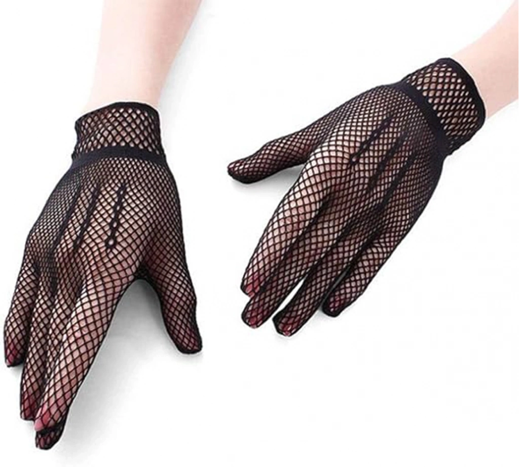 Siyah Renk Likralı File Eldiven Parmaklı Örgü Eldiven Yetişkin Boy