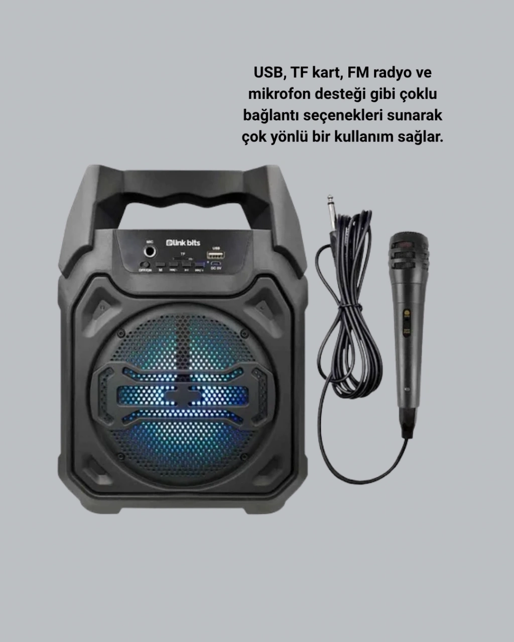10W ses gücüyle hem iç hem dış mekanlarda net, güçlü ve dengeli bir ses deneyimi sunar. Bluetooth bağlantısı sayesinde telefon, tablet veya bilgisayar gibi cihazlara kolayca bağlanarak kablosuz müzik keyfi yaşatır. FM radyo, USB ve Micro SD kart desteğiyle müzik dinleme seçeneklerinizi genişletir. Şık ve portatif tasarımı sayesinde her yere kolayca taşınabilir.