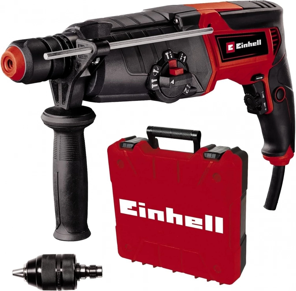 TE-RH 950 5F kırıcı delici matkap garajda ve atölyede her zaman elinizin altında bulunması gereken çok fonksiyonlu bir üründür. Cihaz beş özelliğe sahiptir: Delme veya darbeli delme, sabit ve sabit olmayan keskileme ve elbette vidalama. kırıcı delici bu özelliklerin tümünü bünyesinde barındırıyor. İki vitesli dişli kutusu sert malzemeleri delmek ve vidalamak için tasarlanmıştır. Birinci vites yüksek tork, ikinci vites yüksek devirde yüksek itici güç sunar. 950 W kırıcı delici taş, ahşap ve metal gibi tüm bilindik malzemeleri güçlü bir şekilde işler. Betonda 28 mm'ye kadar delme kapasitesine sahiptir. Pnömatik darbe mekanizması mükemmel bir itme gücü sunar. Tüm fonksiyonlar tek bir konum düğmesiyle seçilebilir. Softgrip yüzey sayesinde ele konforlu bir şekilde oturur. Sürekli çalışma kilidi ile keyifli ve kolay çalışma imkanı sunar. Yarı otomatik fonksiyonlu sağlam SDS-Plus alet tutucu sayesinde parça değişimi hızlı ve kolaydır. Delici kırıcıda metalden yapılmış ayarlanabilir delme derinliği mesnedi bulunmaktadır. Ek mandren vidalama ve delme işlemleri için tasarlanmıştır. Ürün pratik bir E-Box Basic taşıma ve saklama çantasıyla birlikte verilmektedir.