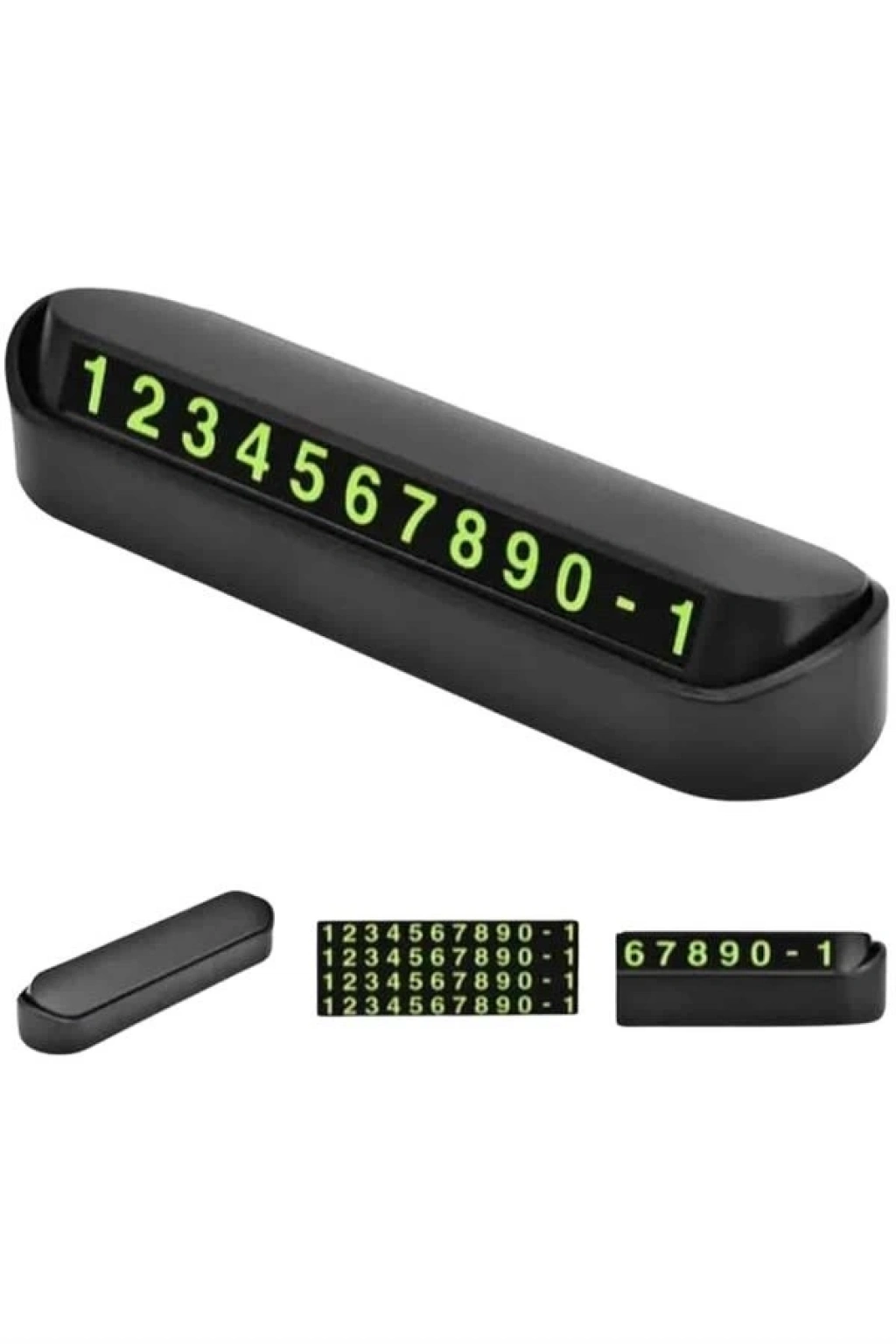 Araç içi park numaratörü, fosforlu yapısıyla gece bile kolayca görülebilen telefon numarası görünürlüğü sağlar. Montaj gerektirmeyen pratik tasarımı sayesinde saniyeler içinde yerleştirilebilir. Dayanıklı yapısı uzun süreli kullanımlarda formunu korur, estetik görünümü ise araç içi dekorunu tamamlar.