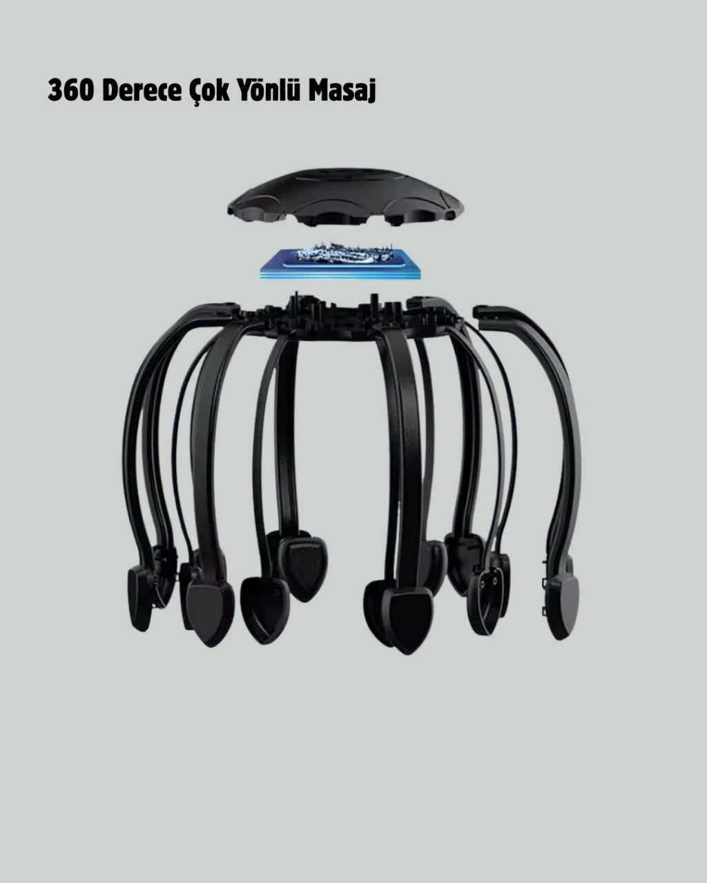 Saç derisi sağlığını iyileştirmek ve kan dolaşımını artırmak isteyen herkes için geliştirilmiş bu elektrikli kafa masaj cihazı, 8 bağımsız masaj kolu ile çok yönlü bakım sunar. Masaj başlıkları, saç derisini sıkıştırmadan ve saçları çekmeden yumuşak dairesel hareketlerle masaj yaparak saç köklerinin beslenmesini destekler.Kan dolaşımının artması, saç köklerinin daha güçlü hale gelmesine, dökülmenin azalmasına ve saçların daha sağlıklı görünmesine katkıda bulunur. Özellikle stres, uykusuzluk ve yoğun tempodan kaynaklanan saç derisi gerginliği için etkili bir çözümdür.3 modlu masaj sistemi sayesinde ihtiyacınıza göre hafif, orta veya yoğun masaj tercih edebilirsiniz. Günün sonunda gevşeme, sabah enerji verme ya da duş sonrası rahatlama için ideal kullanım sunar.USB üzerinden şarj edilebilir olması, taşınabilirliğini artırır. Hafif tasarımı sayesinde evde, ofiste, araba içinde veya seyahatte kolayca kullanılabilir. Eller serbest çalışma özelliği, kitap okurken, bilgisayar başında veya dinlenirken masajı kesmeden devam ettirme imkânı sunar.Cihazın çok noktadan baskı uygulayan yapısı, saç derisindeki dolaşımın düzenli şekilde uyarılmasını sağlar. Saç diplerindeki oksijenlenme artar, bu da uzun vadede daha canlı ve parlak saç görünümüne destek olur.Saç derisini rahatlatan, stresi azaltan ve genel kafa bölgesi sağlığını destekleyen bu cihaz, güzellik ve bakım rutininize profesyonel bir dokunuş katar.